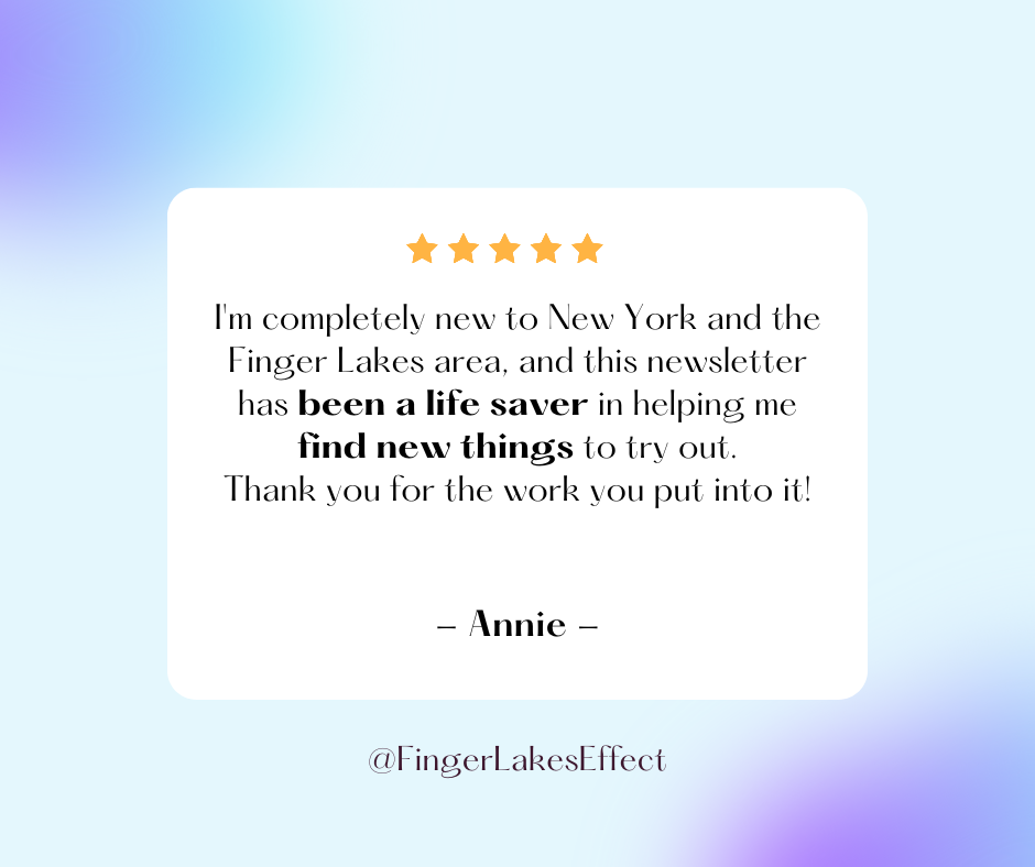 Finger Lakes Effect is your window into the Finger Lakes. A weekly newsletter written by a Finger Lakes resident delivering curated local news, events, and happenings right to your inbox.